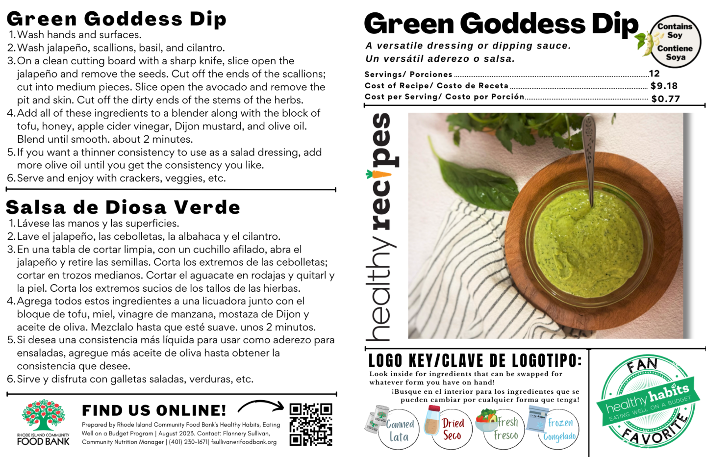 The Rhode Island Community Food Bank’s community nutrition team develops and shares nutritious, budget-friendly recipes that allow pantry guests at our member agencies to explore new ways to enjoy accessible foods, including seasonal, fresh, canned, and frozen produce.