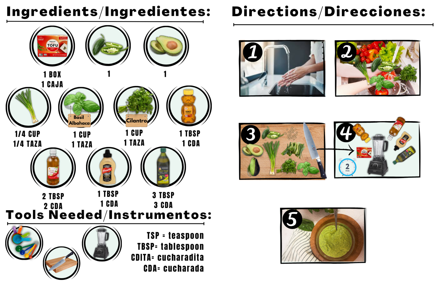 4. Agrega todos estos ingredientes a una licuadora junto con el bloque de tofu, miel, vinagre de manzana, mostaza de Dijon y aceite de oliva. Mezclalo hasta que esté suave. unos 2 minutos.